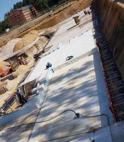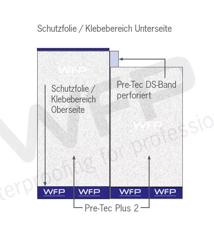 WFP Pre-Tec Plus 2 stosowany jest do uszczelniania zewnętrznych ścian piwnic, fundamentów, tuneli, garaży podziemnych, płyt stropowych i wielu innych powierzchni.